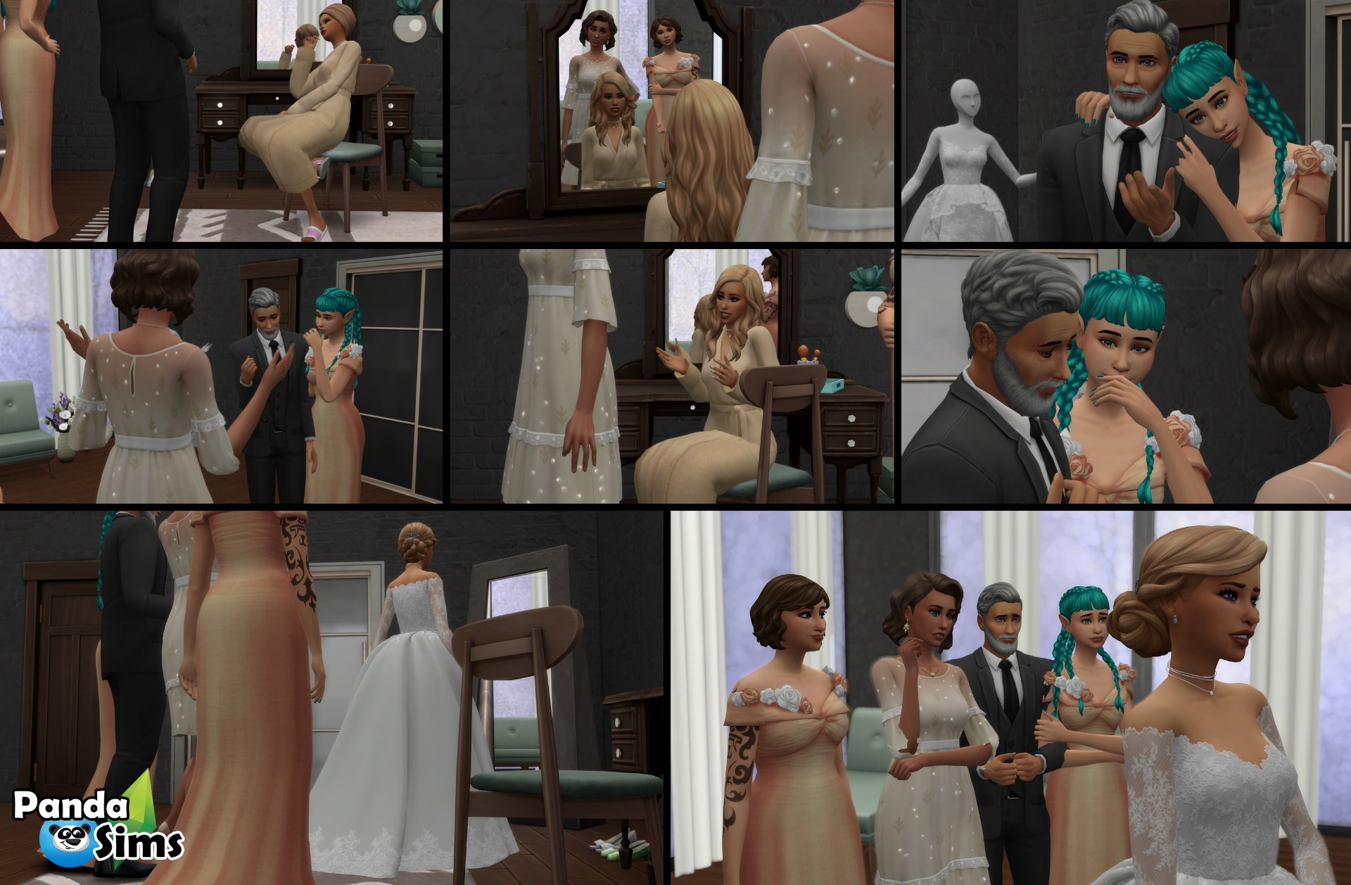 "Začínám být nervózní.. máme prstýnky? Nechybí něco?" začínala plašit Iris, "Uklidni se, máme všechno." řekla Ruby klidným hlasem, "Sundej už ten hadr, musím tě učesat.." nakázala jí Ellie, Iris na její pokyn rozpustila vlasy, které kvůli make-upu stáhla ručníkem "Je to tvoje teto, dělej co umíš." posadila se vzorně čelem k zrcadlu. "Už jsi jim řekl o té farmě tati?" zeptala se Luna Eliota, "O jaké farmě?" zeptala se Iris zmateně, "Já eh.. rozhodl jsem se že se odstěhuju na venkov.." přiznal barvu Eliot, "Bratře, ty jsi se snad úplně zbláznil!?" otočila se k němu Ellie, "Přeskočilo ti dědku? Co tam budeš dělat?" dodala káravě. "Mně už to město nebaví, je tam moc ruch, spěch.. už chci někam do klidu, no! Navíc znáš mně, už jsem na jednom místě moc dlouho.." pokrčil rameny a nahodil nevinný výraz, "Tati ty jsi blázen! Pak mi musíš ukázat kam! Doufám že to není daleko.." smála se Iris, "Ovšem.. mělo to být překvapení, ale to by někdo musel umět držet jazyk za zuby.." pohlédl vyčítavě na Lunu, "Hups." sepjala rty dívka. Ellie ještě při česání neteře utrousila pár poznámek o bratrově rozumu a jejich vzájemné pošťuchování docela uvolnilo atmosféru. Když byla učesaná, zbývalo jen obléct bílé šaty. "Jsi tak nádherná princezno.. maminka by teď byla pyšná. Jsi jí tolik podobná.." řekl Eliot a snažil se udržet slzy v očích, ale oči se mu leskly jako vodní hladina, Luna měla taky co dělat aby je udržela, protože díky svým schopnostem cítila emoce svého táty. "Děkuju tati, taky bych si přála, aby tu dneska byla." řekla Iris a pousmála se, "Snad vyjde vše jak má.." dodala tišeji..