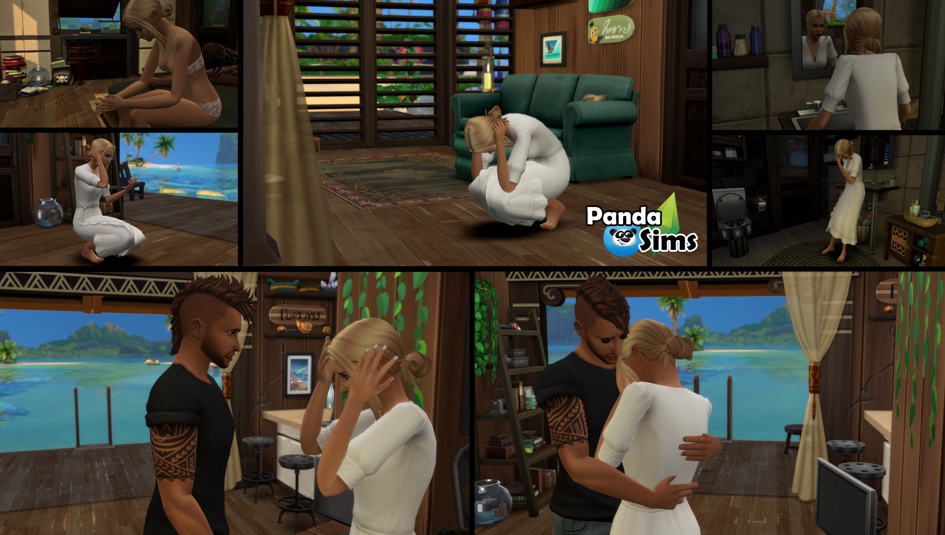 Když se vrátila do Evegreenu, měla zvláštní pocit. Jakoby cestovala časem mezi svým pubertálním já a tím dospělým. Mezi starým životem a novým. Mísilo se v ní hodně pocitů a vzpomínek, na to co bylo, co mohlo být.. Rychle ale všechny myšlenky zahodila, když zahlédla Robina, na tváři se jí rozjel spokojený úsměv. Byl na zahradě a zase něco vyráběl, tričko se válelo kus od něj na zemi, nejspíš ho vzteky zahodil když už bylo propocené, on sám byl od potu a pilin, asi něco brousil. "Jsem doma!" ohlásila se a přišla k němu blíž, "Ahoj.." pohlédl na ní Robin a naklonil se pro rychlý polibek na přivítanou, "..jak ses měla? Užila sis to?" zeptal se, "Jo bylo to skvělý, mám pár fotek želv, pak ti je ukážu, příště půjdeš se mnou, byl to super relax." zavrněla spokojeně, "Hmm.." ušklíbl se Robin, "..víš že to tam nemám zrovna extra rád.." zavrtěl hlavou, Iris si povzdechla, "Byl bys tam se mnou, jak můžeš protestovat?" zažertovala rýpavě a přišla k němu blíž. Všechna ta práce na domě a kolem něj Robinovi hodně prospěla, jeho paže zesílily a hrudník se vytvaroval, přitahoval ji silněji než kdy dřív a to bylo co říct. "Půjdu s tebou kamkoliv, ale ne tam.." usmál se Robin a políbil ji, Iris přitiskla své tělo k tomu jeho, "Lásko jsem zpocenej a špinavej.." varoval ji Robin a poodstoupil, "..ušpiníš si tričko.", Iris ale jen pokrčila rameny, "Risknu to." pohlédla na něj nejsvůdnějším pohledem jaký zvládla udělat, Robin ji popadl kolem pasu a přitáhl si ji těsně k sobě, "Jak chceš.." špitl a začal ji líbat, mnohem intenzivněji než předtím. Líbání gradovalo a Robin jí po chvíli vysadil na ponk vedle nich, "Asi by jsi měla jezdit pryč častěji." konstatoval po chvíli, "Cože??" odstrčila ho Iris na oko uraženě, "Když jsi pak takhle přítulná.." pokrčil rameny a lišácky se usmál, "Pitomče.." přimhouřila oči a přitáhla si ho zase blíž, "Taky tě miluju." smál se Robin mezi polibky. Když líbání přešlo v osahávání, přesunuli se raději dovnitř, kolem sice blízko nikdo nežil, ale čím hezčí byla tahle část města, tím víc simíků se tam chodilo procházet. Neohrabaně se svalili na gauč, "Chyběl jsi mi dneska.." špitla Iris a podívala se mu do očí, "To vidím." přikývl Robin s nepřekvapeným výrazem, "Robine!!!" praštila ho pěstí do hrudi Iris, Robin se zasmál a začal jí líbat na krk. Pak se začali svlékat a přestali se smát. Pošťuchování nahradilo gradující vzrušení. Užili si krásné odpolední milování..